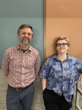 This past summer, George Dalbo, left, assistant professor of Education & Youth Studies, collaborated with Kipper Bromia, a junior majoring in Sociology to analyze how the Armenian Genocide is portrayed in high school curricula and on social media.